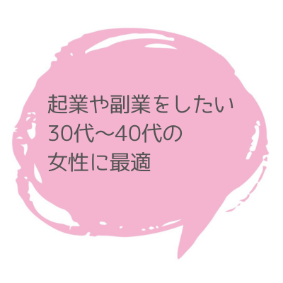 この講座は、起業や副業をしたい女性を応援するために作りました。特に時間と場所に縛られず働きたい人、自分の力で収入を得たい人、副業して収入を増やしたい人などを想定しています。